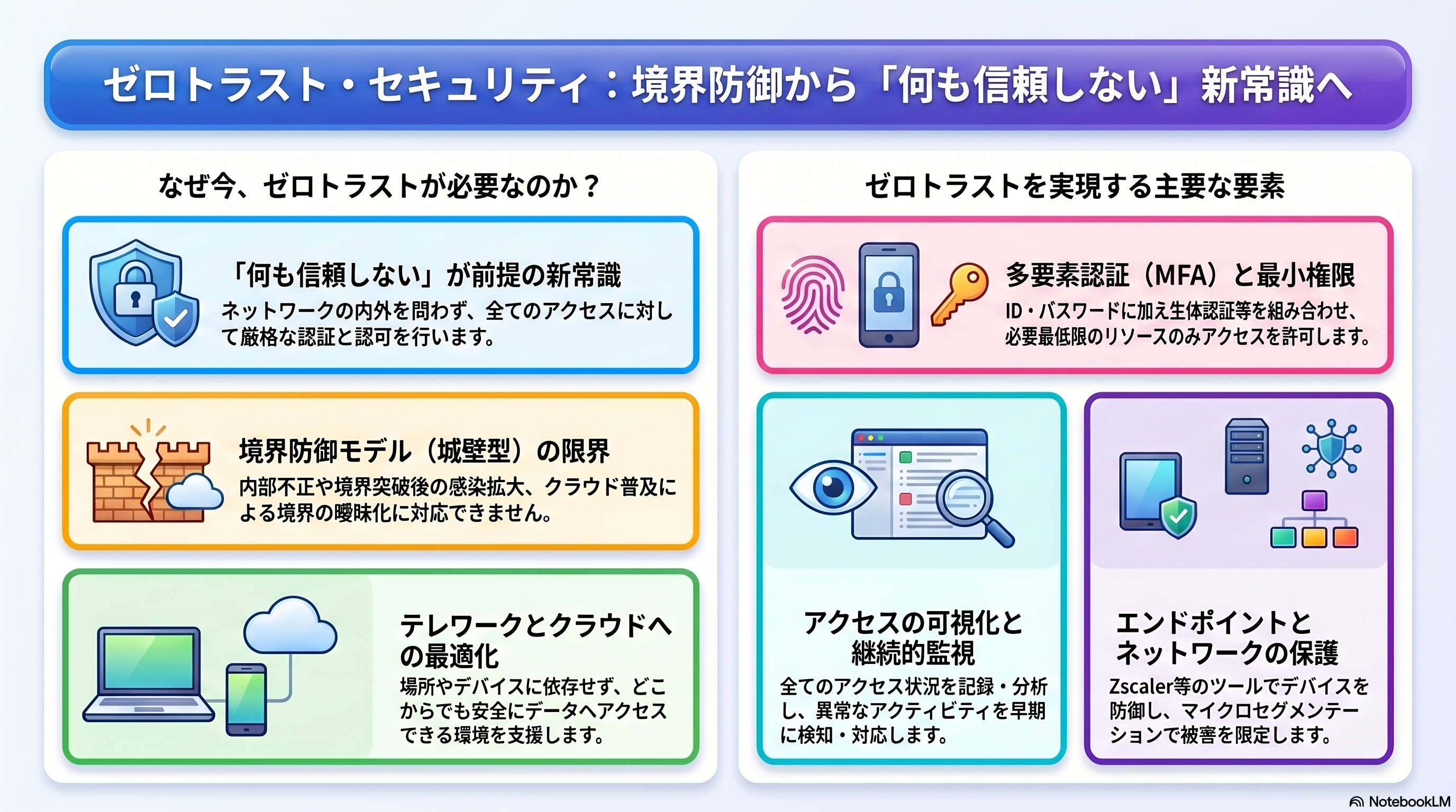 ゼロトラストは、従来の境界防御型セキュリティとは異なる、新しいセキュリティの考え方です。