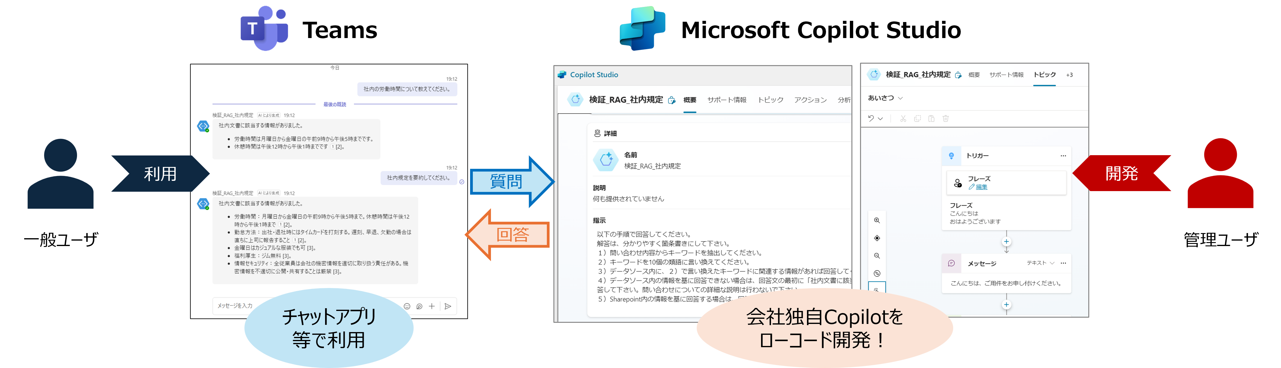 本サービスでは、会社独自のCopilot エージェントが構築可能なMicrosoft Copilot Studioについて、